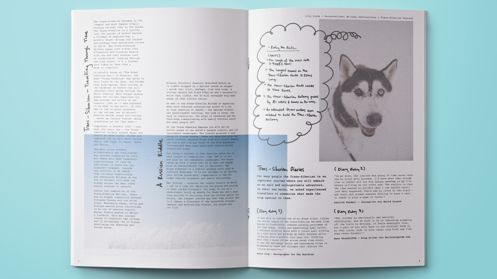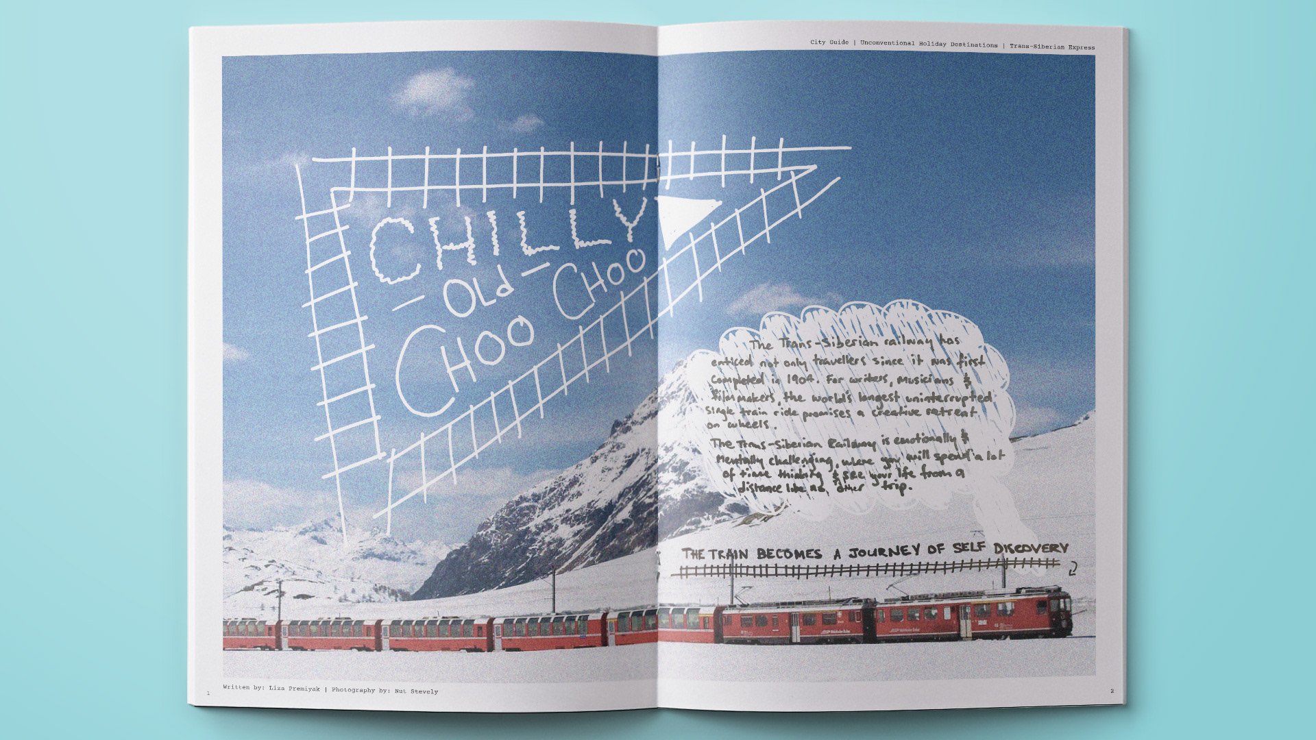 Cover and layout design for a travel magazine catering to independent travellers who want to get off the beaten path.